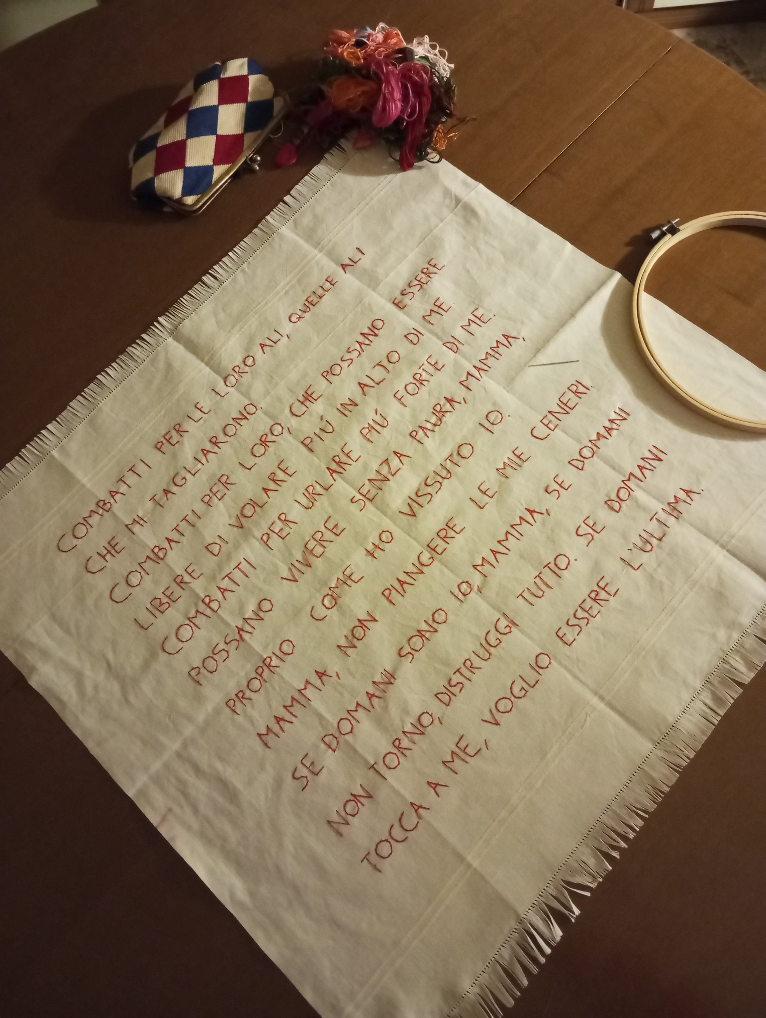 Allora ho ricamato parte della bellissima poesia di Cristina Torres-Cáceres. Non la frase che tutte stanno condividendo. No. Sono partita prima.