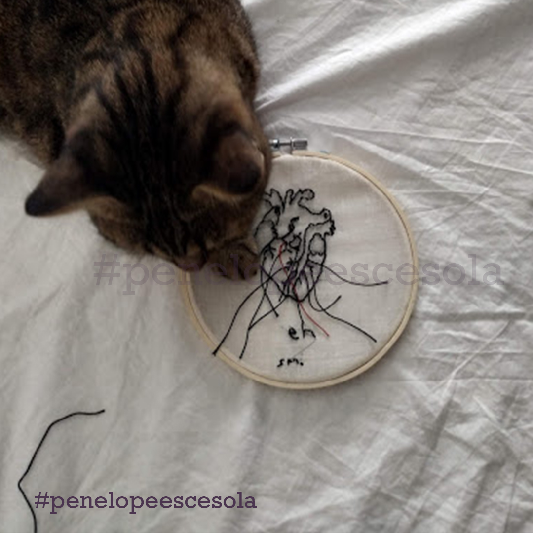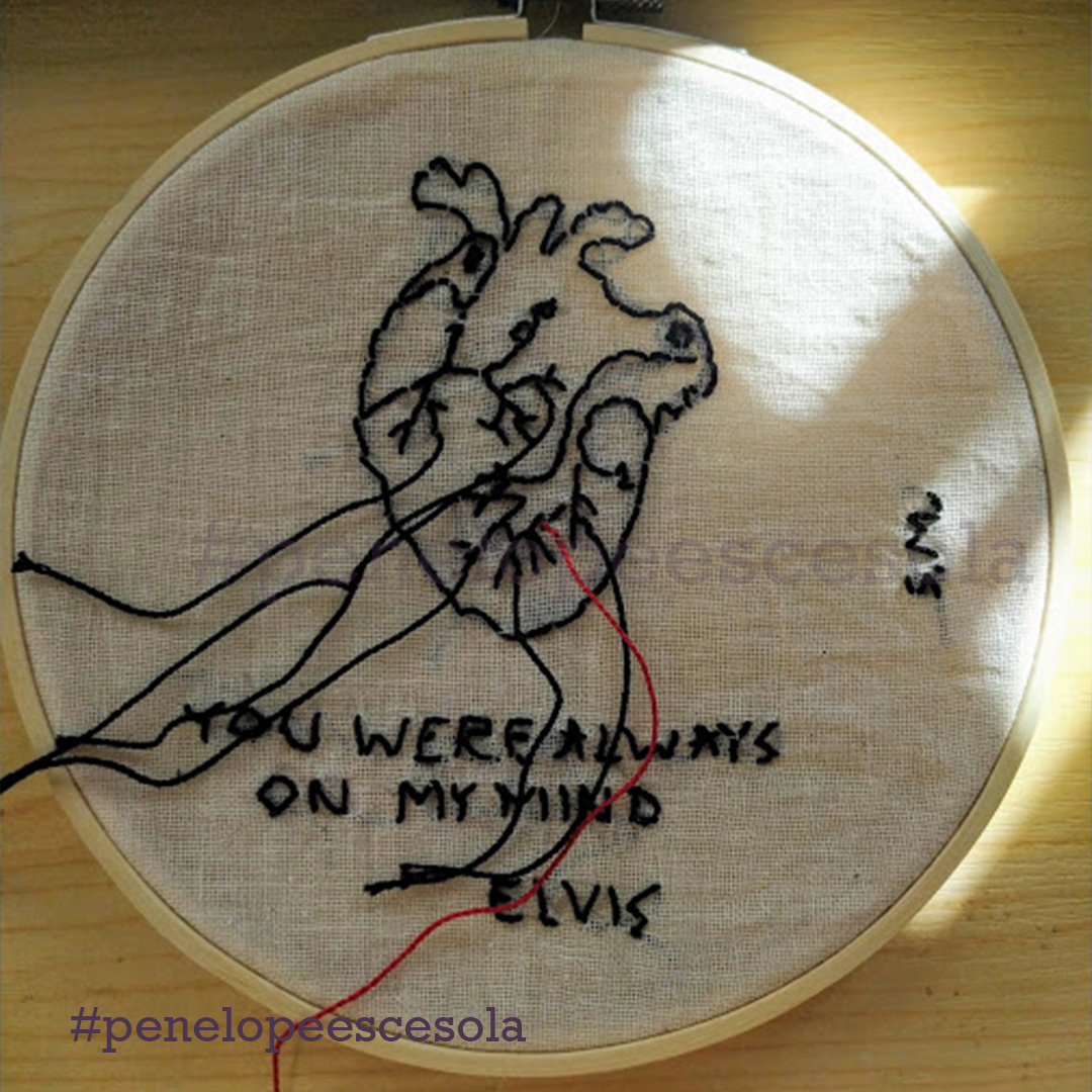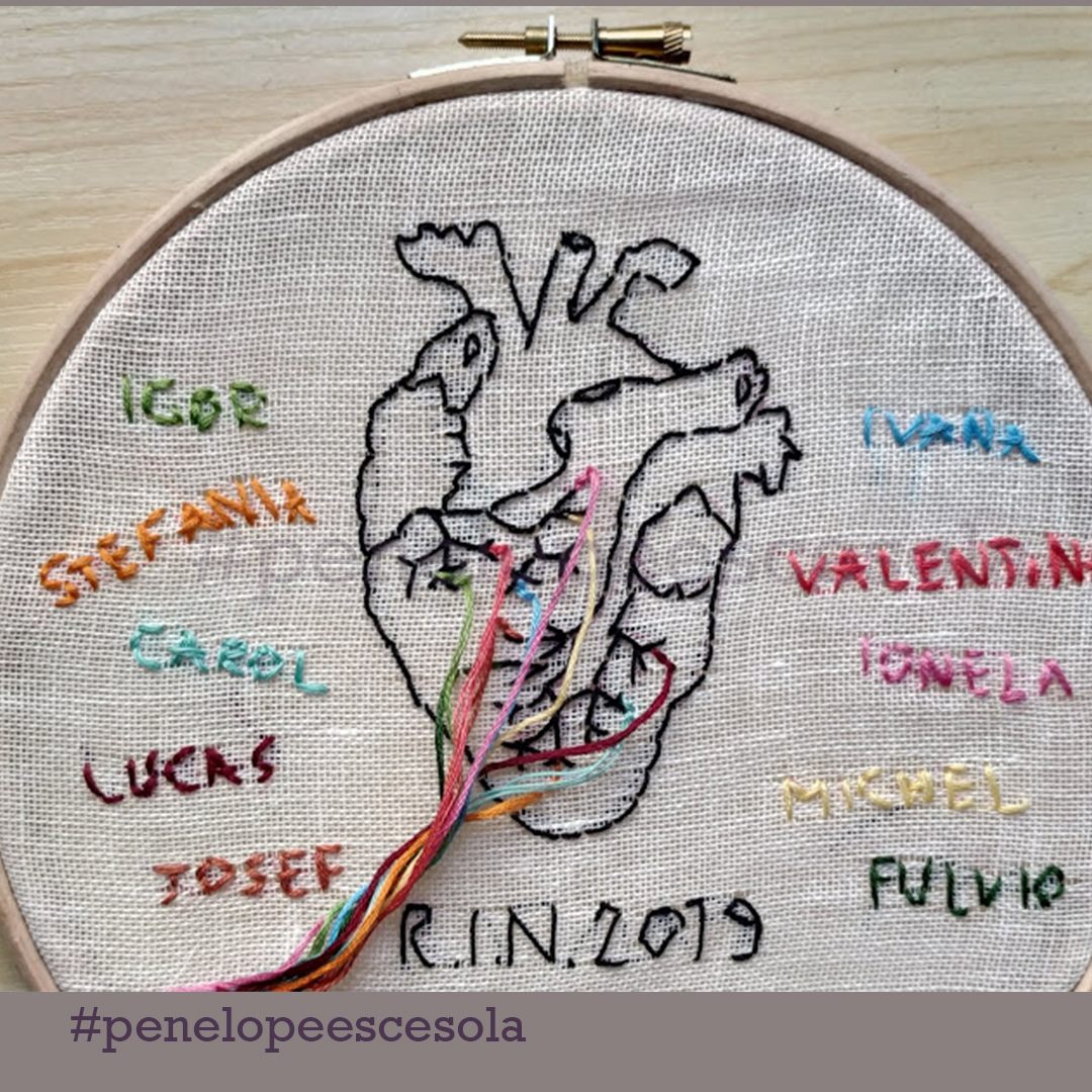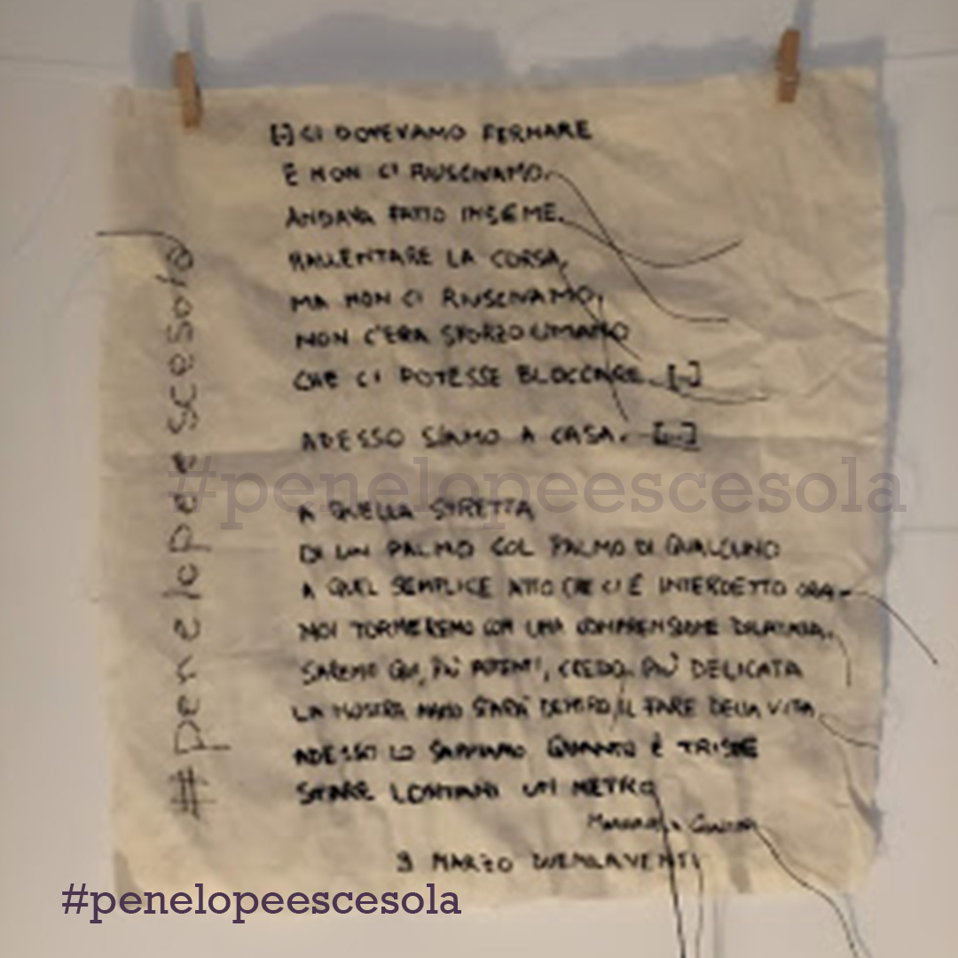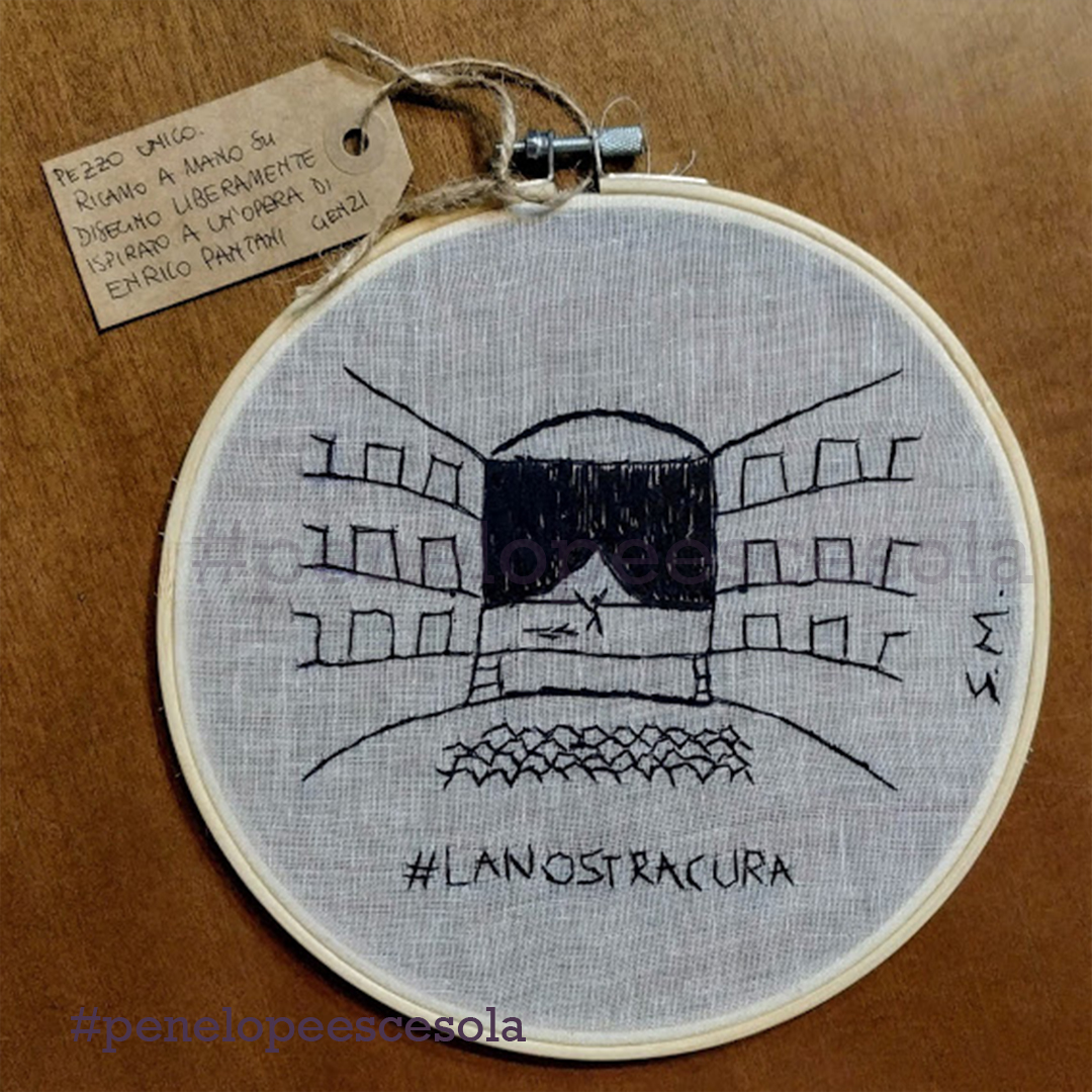 Chiusa in casa, ho iniziato a ricamare alcuni versi della poesia di Mariangela Gualtieri “Nove marzo 2020”. Così ho scoperto una forma di espressione artistica che mi appartiene. Mia madre mi ha dato il telaio e dei fili con cui aveva realizzato dei lavori quando era giovane. Ho ricamato cuori: ad ogni punto, un sospiro e un pensiero dedicato alla persona che avrebbe ricevuto in dono quel mio artefatto. Ora sto proseguendo, sperimentando anche nuovi tessuti, comprese le t-shirt.