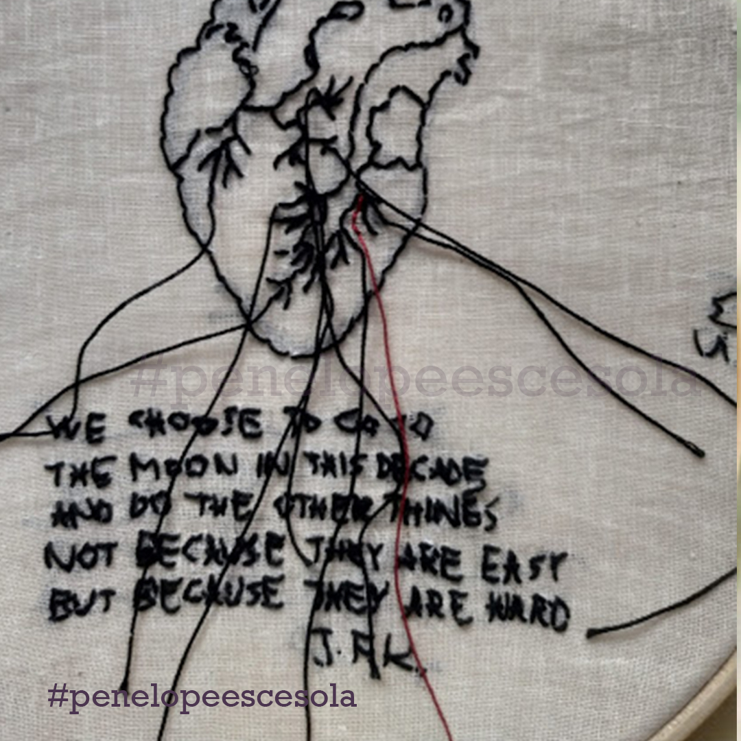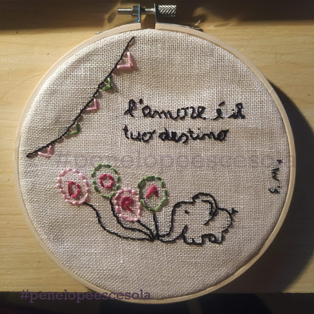 Un punto tira l’altro: questa pratica meditativa mi connette con i miei pezzi di cuore sparsi per il mondo, il ricamo dà subito la soddisfazione di vedere il prodotto del proprio lavoro e accende idee per quello successivo. Ovviamente, da brava Penelope, la mia tela non è mai completamente finita.
